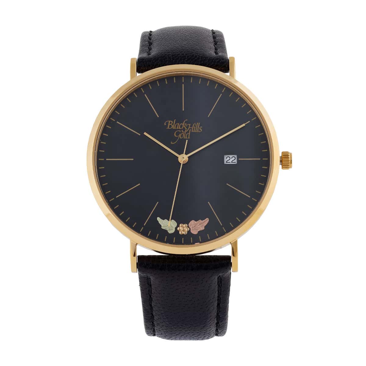 Black Hills Gold Fashion Watch with Gold Plate and Large Black Dial