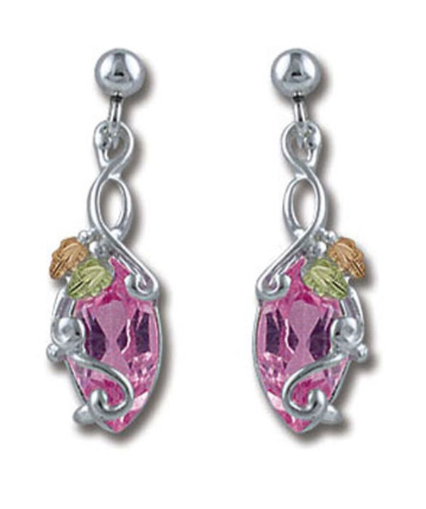 Black Hills Silver ball post earrings, from Landstroms! Each have 10x5mm lab-created* Rose Zircon stone and 12 karat Black Hills Gold leaves. THIS IS A SPECIAL ORDER ITEM ONLY. PLEASE EMAIL [email protected] TO ORDER.