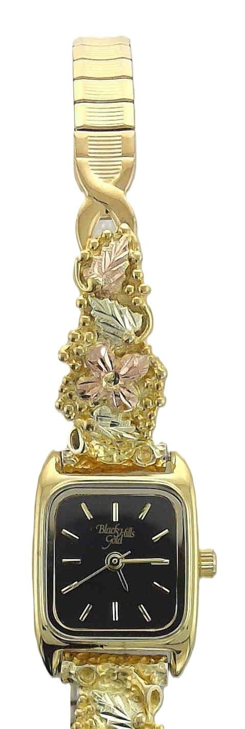 Landstrom’s Black Hills Gold Black Dial Watch with Ornate Band