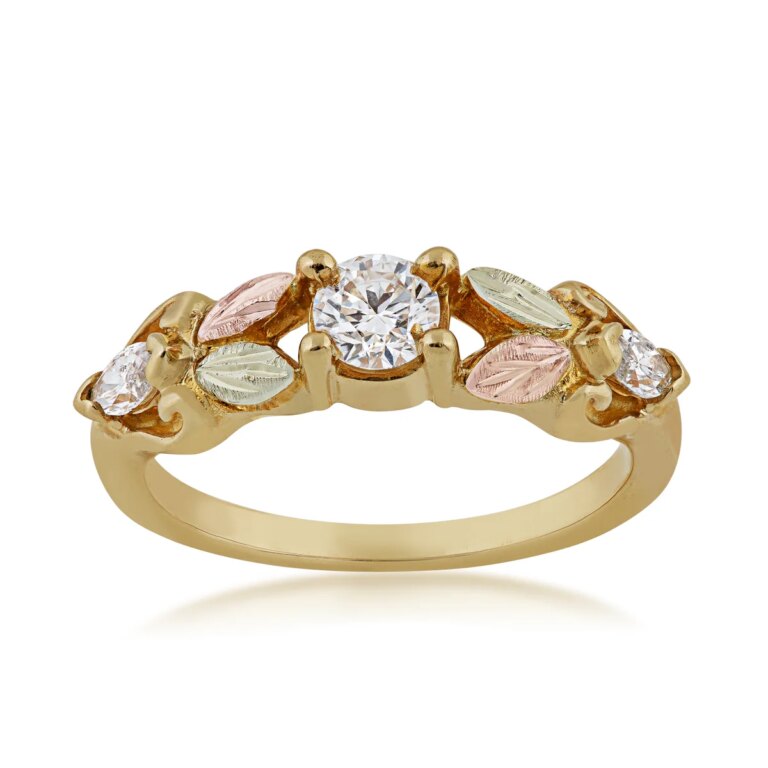 Landstroms Black Hills Gold 1/3 CT diamond engagement ring, accented with 12 karat gold pink and green leaves. Pair with G LWR944BD for a wedding set.